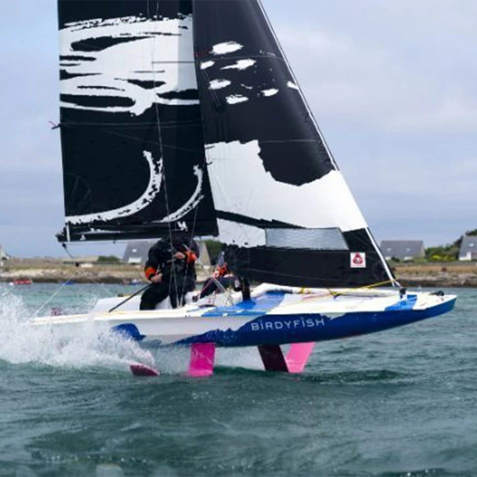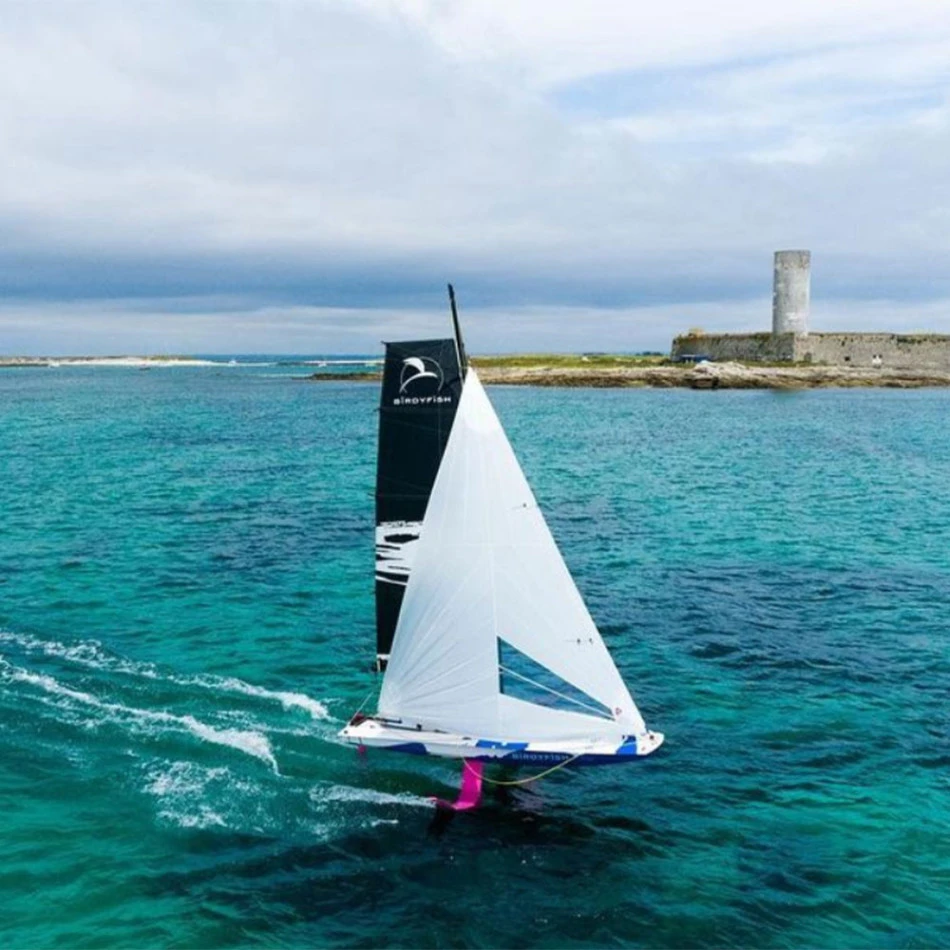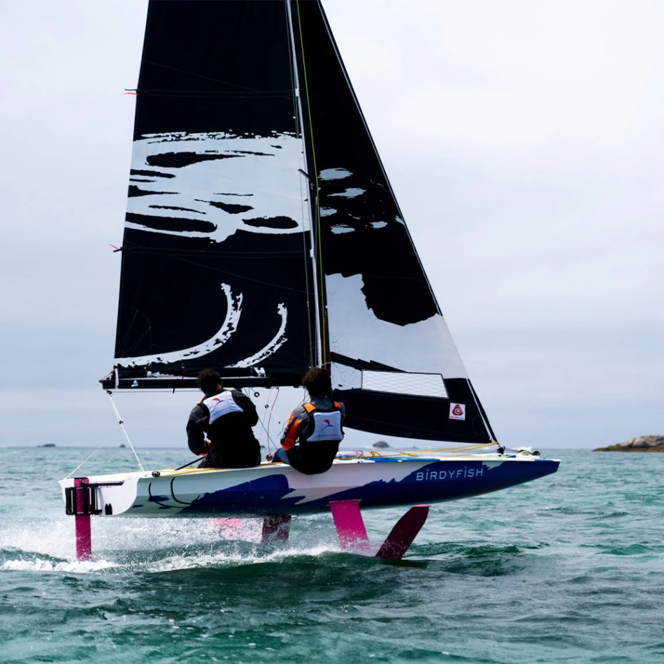 Le Birdyfish est un dériveur de nouvelle génération. Équipé de foils en »J » autorégulés et d’un plan porteur sur le safran, il ne faut que quelques noeuds de vents pour faire décoller le Birdyfish et atteindre des vitesses élevées jusqu’alors réservées aux régatiers de haut niveau. Avec son concept de carène Scow et ses foils latéraux, le Birdyfish est un concentré de technologies issues de la course, avec pour objectif l’accessibilité aux vols et aux performances.