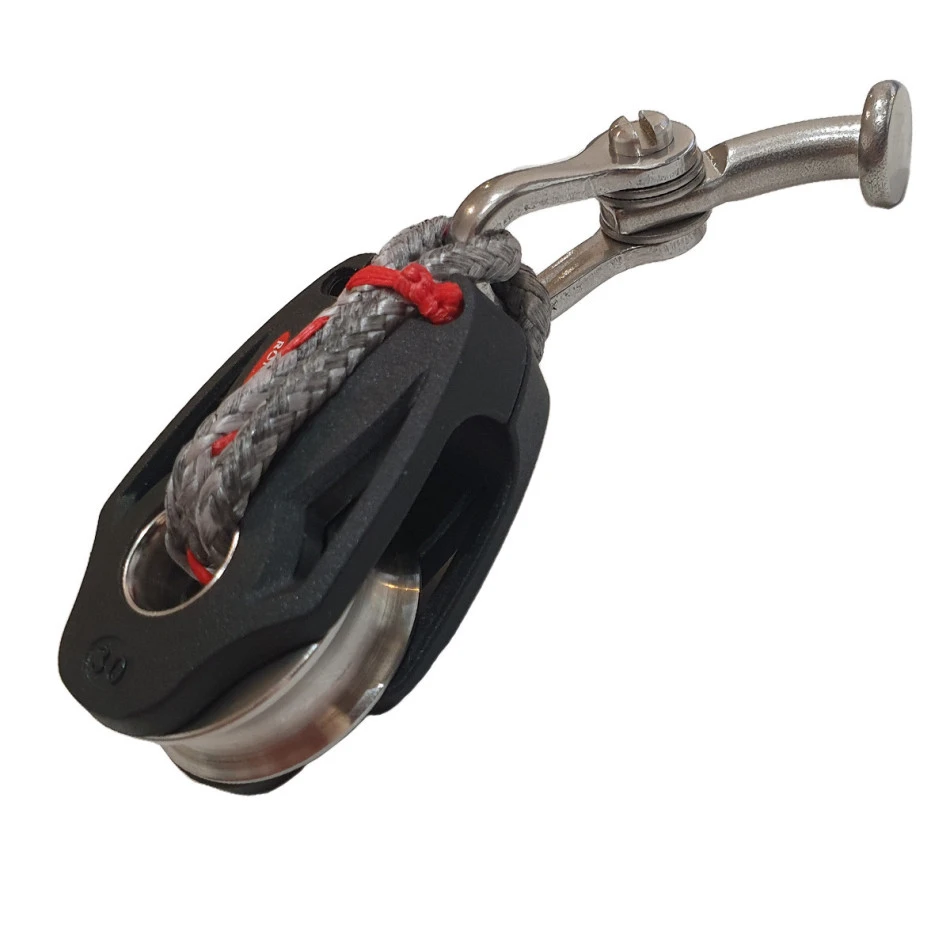 La poulie de Hale-Bas Ronstan pour dériveur ILCA est une poulie haute charge prête à l’emploi avec la clé de fixation. Nous réalisons nous même le Loop en Dyneema et le montage sur la clé de fixation de Hale-Bas. Cette poulie avec roulements acier inox de qualité 304, un réa Inox grade 2205 de 30mm vous permettra de réguler votre Hale Bas avec beaucoup plus de faciliter.
