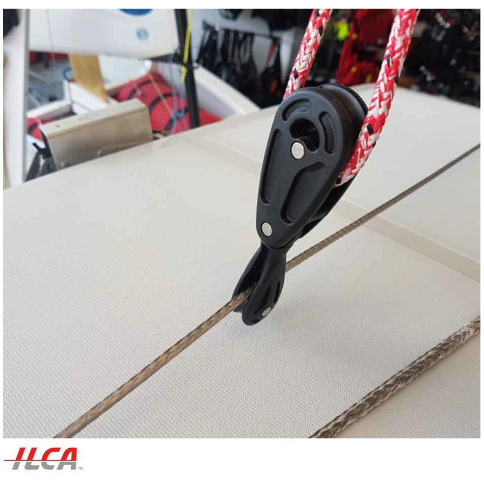 Poulie de pantoire Harken pour dériveur ILCA. Homologué pour les régates ILCA. Poulie en composite avec roulements à billes sur le réa d’écoute. Pour le bout de pantoire, nous vous conseillons un bout en Dyneema.
