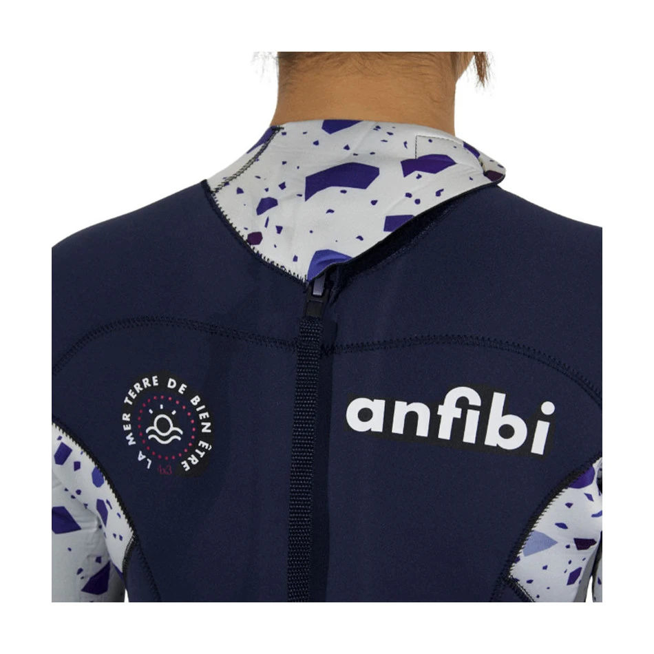 Anfibi innove avec une double fermeture au niveau du col. Le velcro à l’avant et le velcro à l’arrière vous permettent d’ajuster la fermeture du col selon vos préférences, de restreindre l’entrée d’eau par temps froids et d’aérer par temps chauds. La composition en néoprène ultra stretch rend la combinaison extrêmement flexible et confortable, avec une bonne liberté de mouvements.