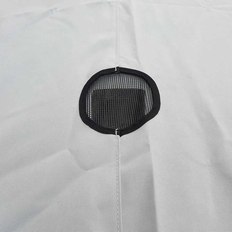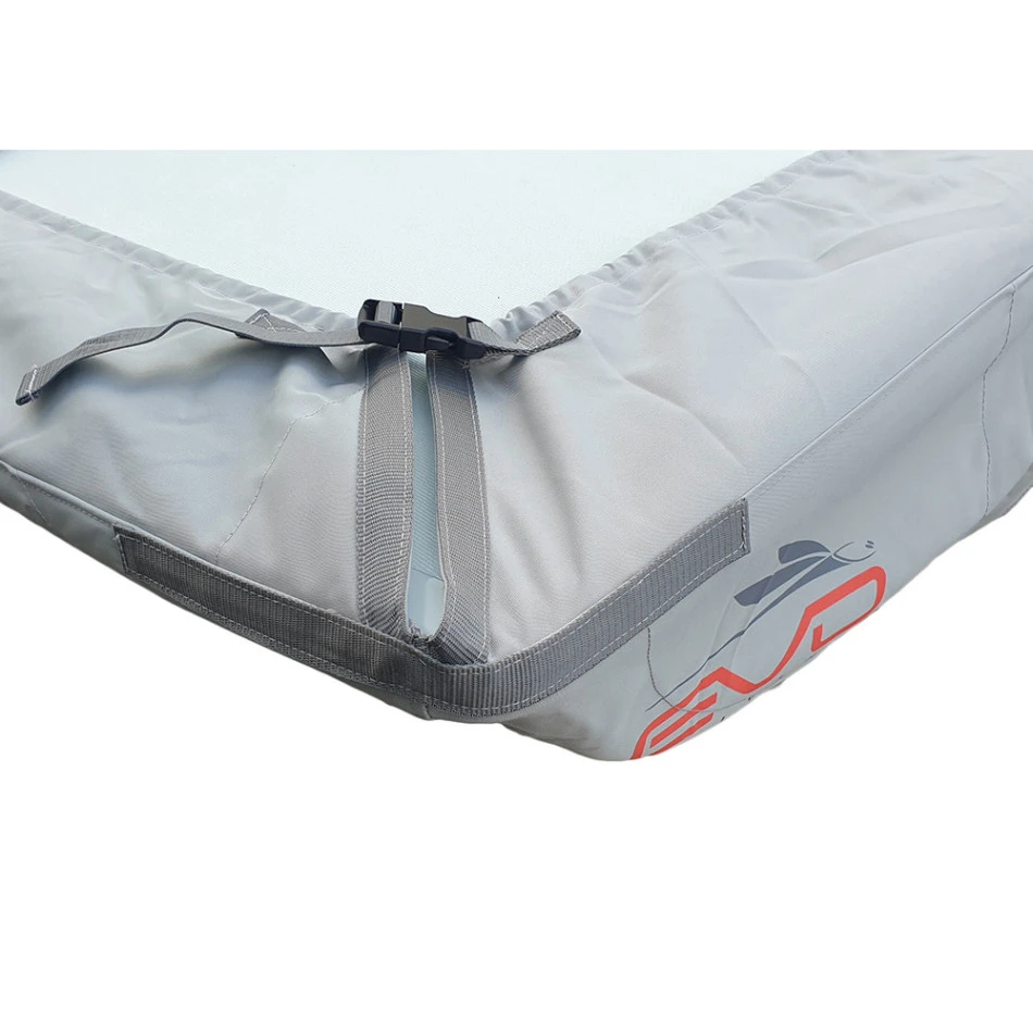 Le taud de dessous Evo dispose de renforts dans les angles, d’une évacuation d’eau au niveau du vide vite, d’une ouverture sur les fémelots pour la pose d’une plaque de feux.